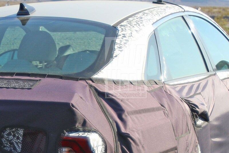 Een hoop nieuws vanuit de ‘driekwart-achter-hoek’ dus, maar ook elders gaat de Optima heus danig op de schop. Door de overvloedig aanwezige camouflage is daar in dit stadium nog niet zo heel veel over te vertellen, al lijkt de auto een agressievere, lagere neus te krijgen. Aan de voorzijde van de zijruitpartij valt bovendien een extra raamstijl ter hoogte van de buitenspiegel op, terwijl die spiegel met een pootje op het portier staat. Aan de achterzijde verhuist de kentekenplaat naar de achterbumper, wat voor een compleet andere aanblik zal zorgen.