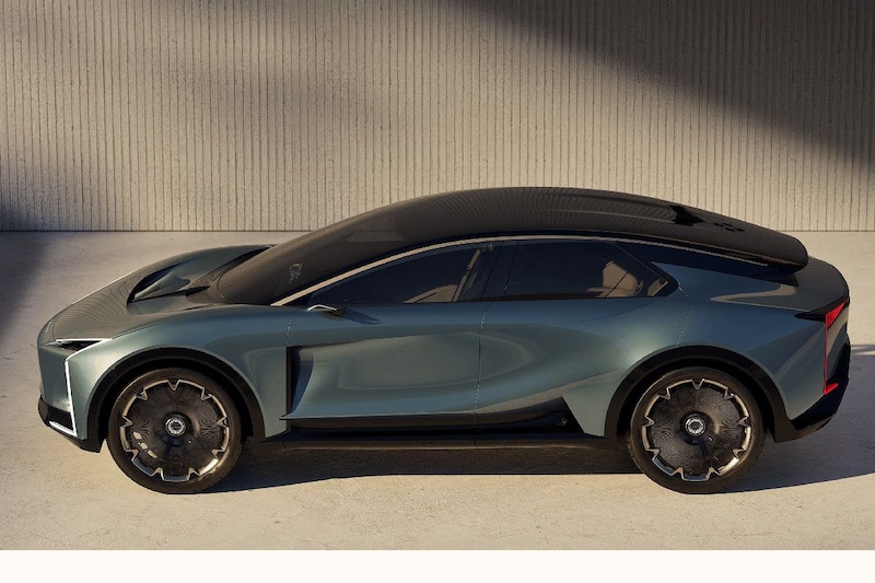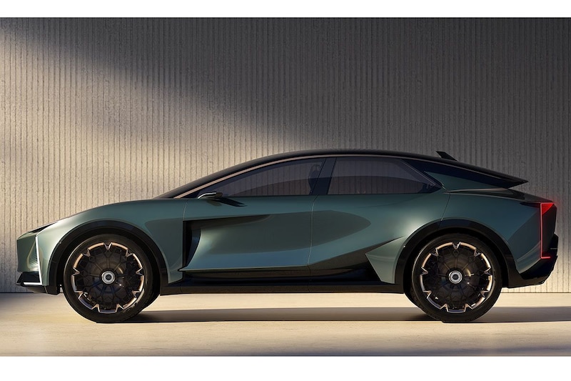 Dan is er de Lexus LS Coupe Concept. Hoewel zijn naam anders doet vermoeden is dat geen coupé, maar een elektrische SUV met een vanaf de B-stijl sterk aflopende daklijn. De achterportieren scharnieren aan de achterzijde en de showauto heeft helemaal achteraan een kleine laadopening die enigszins aan een uit de kluiten gewassen brievenbus doet denken. We zien ogenschijnlijk fraaie materialen, bamboe-afwerking en een dashboard dat verstoken lijkt van fysieke knoppen. Verdere informatie deelt Lexus niet en dus is ook van deze concept-car niet precies bekend wat de boodschap ervan is.