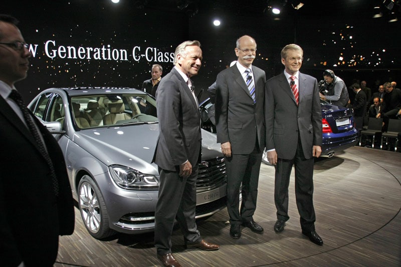 Dr. Dieter Zetsche, de allerhoogste van Daimler AG en hoofd van Mercedes-Benz personenauto's, kraaide vooral victorie over het afgelopen autojaar 2010 en verwacht ook veel van komend jaar. Mercedes kende een groei van 15%, op de Amerikaanse markt en verkocht 18% meer auto's. In mega-groeimarkt China is helemaal de beer los. Redenen genoeg dus voor tevreden, feestelijke gezichten in Detroit. Die opgefriste C-klasse staat vandaag overigens niet op de Detroit autoshow. Hij maakt zijn showdebuut in Genève, in maart. Een woordvoerder van Mercedes: "De Amerikaanse markt loopt een half jaar achter qua introducties. Zij krijgen de nieuwe C pas in het najaar. Niet zinvol dus om die nu al op de show te zetten. De R, de ML en de GL zijn de Mercedessen die hier op de show moeten stralen."