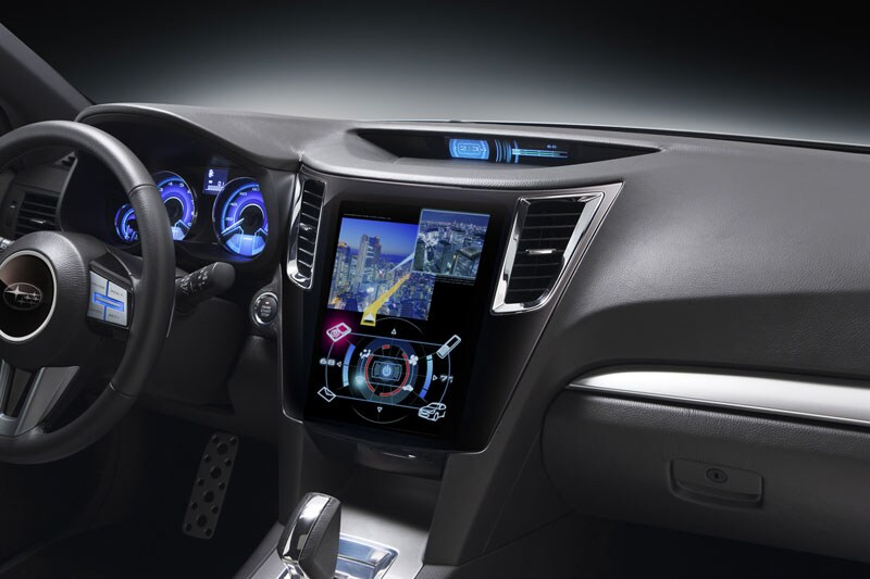 De Amerikaanse concept is voorzien van een 3,6-liter zescilinder boxer en vierwielaandrijving. Ga er maar gerust vanuit dat die motorisering het niet gaat redden tot Europa. Daar moeten we het doen met bescheidener motoren. Vooral opvallend is de vorm van de koplampen die natuurlijk zijn voorzien van hoogmodieuze LED-techniek. Op de plek van de zijspiegels zitten camera's die hun beeld op de plek van de binnenspiegel laten zien. De achterpassagiers hebben een eigen lcd-scherm met touch screen bediening.