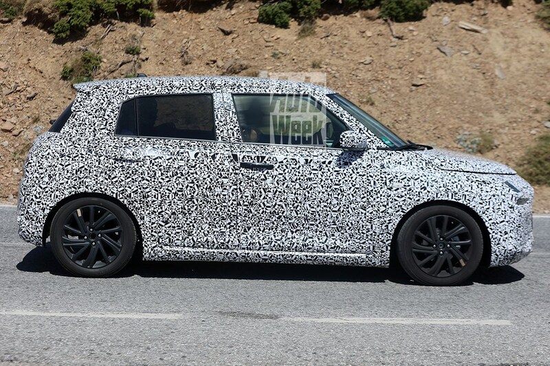 Het is overduidelijk dat Suzuki vasthoudt aan bepaalde Swift-elementen die het merk in 2004 introduceerde op de toen voor Europa derde generatie Swift. Ook het nieuwe model krijgt zo te zien een 'bolle' voorruit en een dak dat als gevolg daarvan relatief ver naar voren doorloopt. Deze nieuwe Swift hangt nog fanatiek in de camouflageplakkers, maar we kunnen al zien dat met name de vormgeving van de achterkant ook een evolutie is van wat de Swift in grote lijnen al zo'n achttien jaar kenmerkt. De in de C-stijl verwerkte handgrepen van de achterste portieren zoals je die op de huidige Swift ziet, lijken echter niet terug te keren.