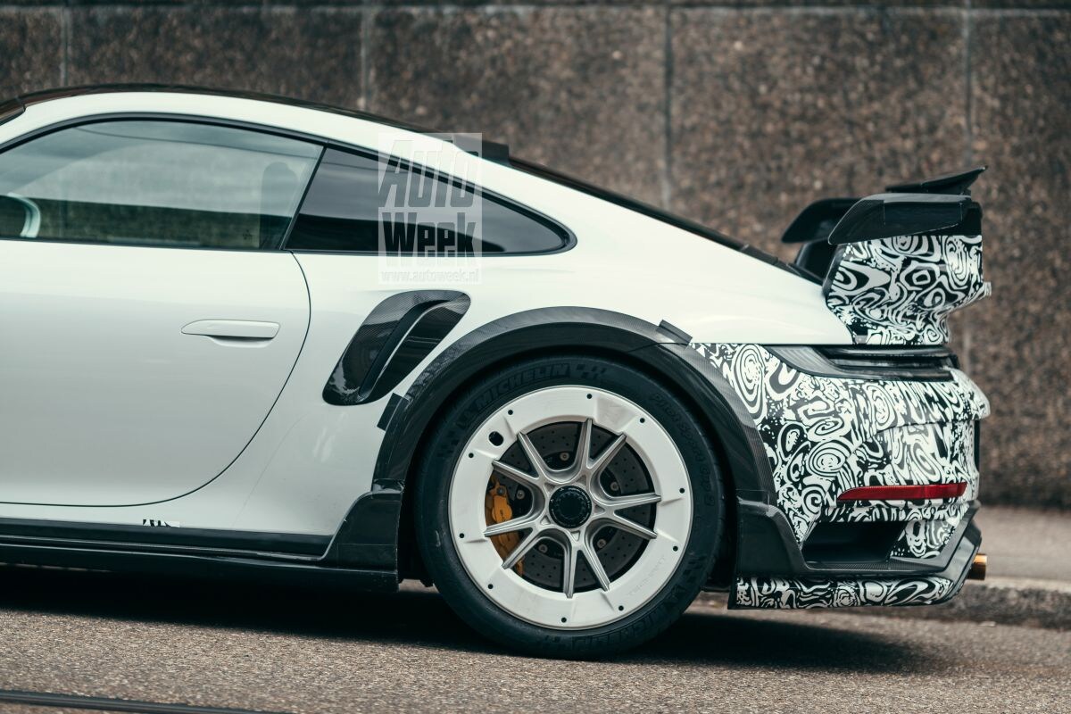 Techart werkt aan een nieuwe GTstreet R op basis van de Porsche 992 Turbo (S). Onze spionagefotograaf betrapte de bespoilerde extremist, die hoogstwaarschijnlijk rond de 800 pk onder de kap krijgt.