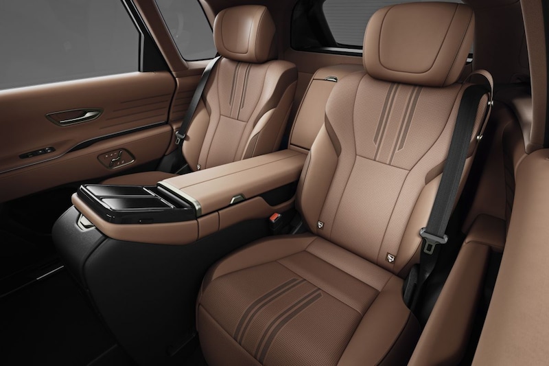 In het interieur van de nieuwe Toyota Century oogt het iets eigenzinniger en opnieuw beduidend moderner dan in de Century sedan. Vergeleken met mogelijke concurrenten zoals de BMW X7 en zeker de Mercedes-Benz (en Mercedes-Maybach) GLS houdt de Century het hier wel vrij bescheiden qua vormgeving. Het oogt sjiek, maar vooral toch ook functioneel. Voor een auto die in 2023 gepresenteerd wordt, is het aantal fysieke knoppen opvallend. De Century is duidelijk een SUV voor wie prinsheerlijk maar zonder al teveel poespas en opsmuk van A naar B wil. Vooral achterin moet dat wel lukken. Daarin tref je twee riante en uitgebreid elektrisch verstelbare zetels, met daartussen een zee aan opbergruimte en een touchscreen om de climate control mee te bedienen. Aan beenruimte ook totaal geen gebrek en de portieren openen in een hoek van hooguit 75 graden om instappen te vergemakkelijken.