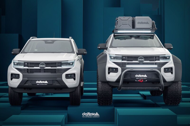 Delta4x4 zet de Volkswagen Amarok 15 centimeter hoger op zijn poten en hangt een uitbundige widebody rond de pick-up. De extra brede wielkasten zijn er niet voor niets, ze bieden plek aan 18-inch wielen met eromheen fors offroadrubber. De Amarok krijgt een bullbar, een ledbalk én een lier op zijn snuit en op het dak monteren de Duitsers een imperiaal waaraan je van alles moet kunnen bevestigen. Ook hier plaatst Delta4x4 een extra lichtbalk. De offroadspecialist verruilt het VW-logo van de Amarok voor een eigen badge, je moet immers wel kunnen zien dat het bedrijf zich met de Amarok heeft bemoeid. Van technische aanpassingen lijkt overigens geen sprake te zijn.