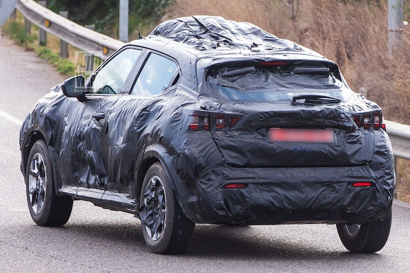Het front lijkt te worden gekenmerkt door een grote grille en in de basis lijkt Nissan dezelfde soort koplampen te gebruiken. Daarbij staat dus een smalle lange lichtstrip los van een andere grote ronde koplamp. De achterkant lijkt wat verder uit te steken dan we tot nu toe gewend zijn. Boven de achterlichten zit een grote vouw. Het heeft er verder alles van weg dat de auto door het nieuwe CMF-B-platform een flink stuk groeit. Onder de motorkap komen we naar alle waarschijnlijkheid de bekende 1.0 en 1.3 TCe’s tegen die we al kennen uit de Micra en Clio. Van de soortgelijke Renault Captur komt een plug-in hybride, maar of een dergelijke aandrijflijn ook voor de Juke beschikbaar komt, is nog onduidelijk.