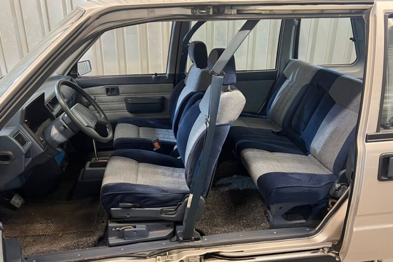 Het betreft overigens een Prairie SGL (stuurbekrachtiging!) met een 2-liter viercilinder, een automaat én vierwielaandrijving. Daarmee is het de dikst gemotoriseerde Prairie (105 pk!) die je in de jaren 80 kon kopen. En de dikste die je nu kunt kopen, want een tweede Prairie wordt er momenteel natuurlijk niet aangeboden. Daar komt meteen het enige nadeel om de hoek: de zeldzaamheid beweegt de adverteerder ertoe een kleine €10.000 voor de Nissan te vragen. Is-ie dat waard?