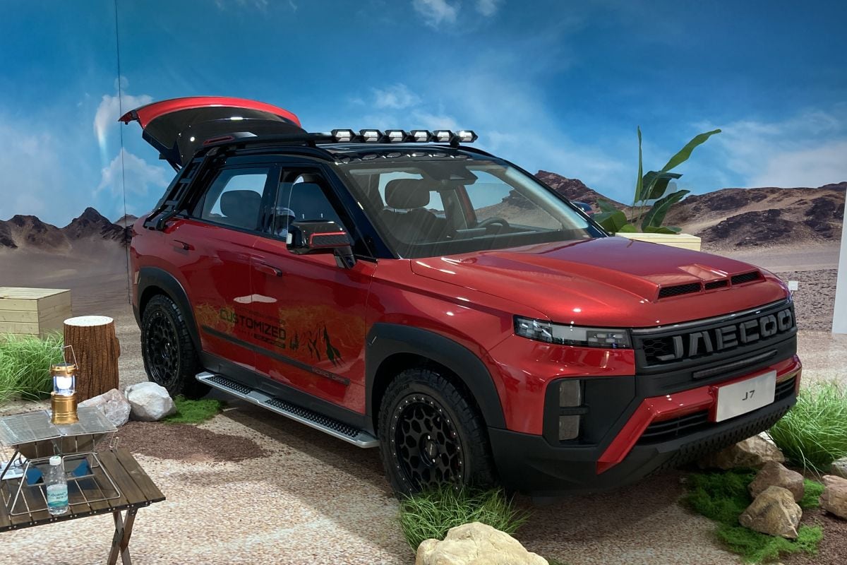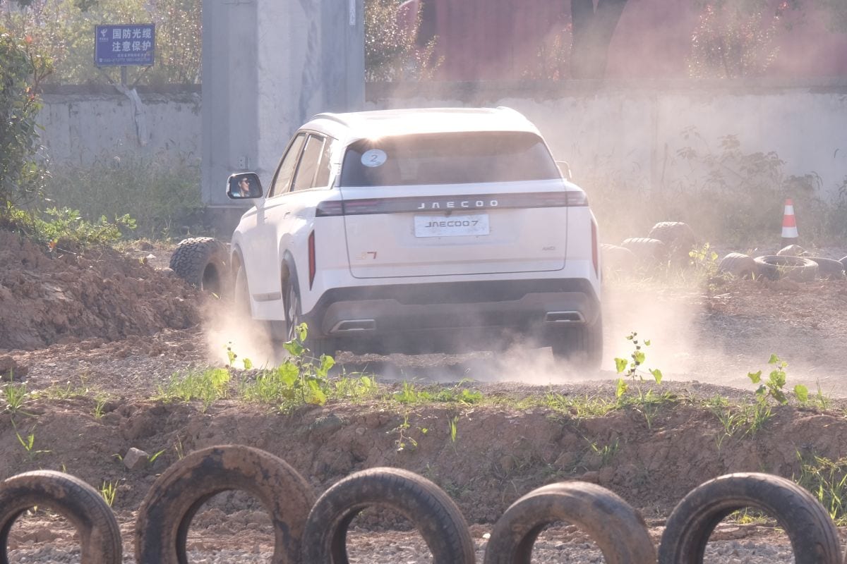 Hoe zit dat? Chery is in China wat betreft volume (1,2 miljoen auto's per jaar) 'slechts' nummer negen, maar doordat meer dan een derde van die productie de boot op gaat, is Chery auto-exporteur nummer één in China. Die auto's gaan tot nu toe vooral naar Rusland, Indonesië, het Midden-Oosten en Zuid- en Midden-Amerika. Daar moet West-Europa bij komen, zo is in de directieburelen in Wuhu besloten. Waar de auto's in eigen land onder de naam Chery of Exeed rondrijden, zijn voor de export meerdere merknamen bedacht. Jaecoo betekent in China zoiets als 'stoere jager' en het is dan ook een SUV met spierballen, zo wil Chery ons doen geloven door ons een rondje over een 'very dangerous and challenging track' te laten rijden. Lees: een braakliggend lapje grond waar ze een paar emmers zand op hebben omgekiept. Zelfs de MX-5 van ondergetekende zou dit stukje met de vingers in de neus hebben beslecht, maar dat terzijde. Helaas staat alleen de benzineversie voor ons klaar, dus een rij-impressie houd je nog even van ons te goed.