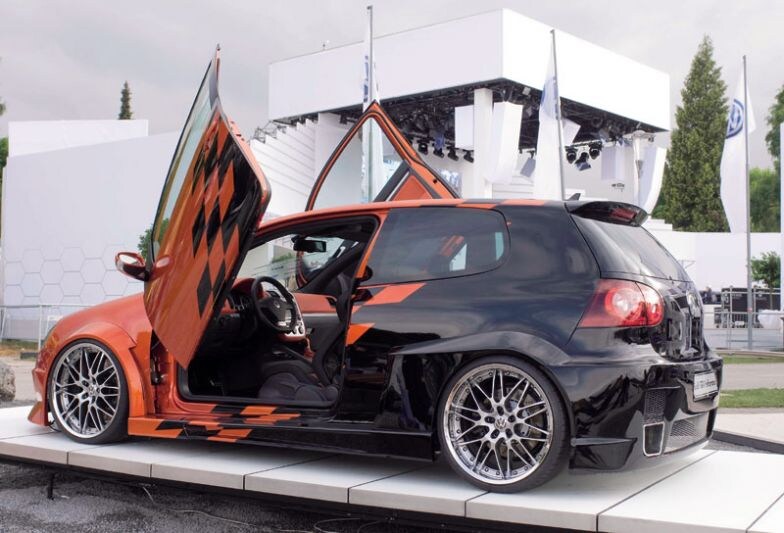 Hoofdact op het tuningsevenement is de Volkswagen Scirocco die wordt ingezet voor de 24-uursrace op de Nürburgring, maar ook deze Golf GTI Performance studie zal de nodige aandacht trekken. Dikke bumpers, enorme wielen en een bonte beschildering moeten de VW-fans in vervoering brengen. Racestoelen, en veel oranje in het interieur, let ook op de positie van de stoel voor de achterpassagier. Minder gepimpt is de Passat R36 Stylingstudie. De al lang verwachte 300 pk sterke Passat hebben we nog steeds niet kunnen rijden, in Oostenrijk staat al een nog dikker gemaakte versie. En dan hebben we het vooral over het uiterlijk dat door Volkswagen zelf is aangepast. Onder de motorkap is niets veranderd, de auto moet het vooral van zijn uiterlijk hebben. Vandaar onder meer de 20 inch wielen, die van de Touareg R-Line stammen. En met 300 pk is de 3.6 FSI natuurlijk ook sterk zat.
