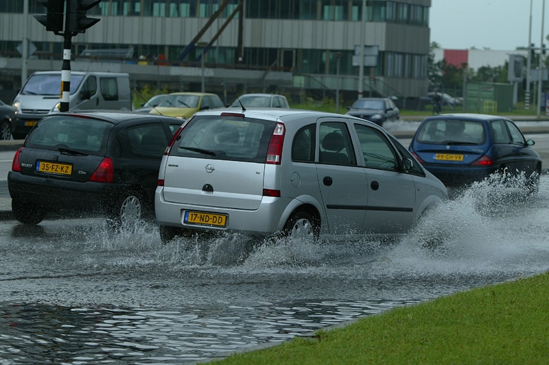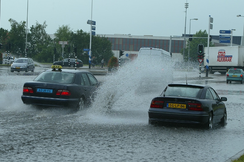 Voor onze deur was er namelijk een enorme wolkbreuk, zoals op de foto's te zien is. Het verkeer ondervond de nodige hinder van het water op de weg, maar dankzij ingrijpen van de brandweer was de situatie vrij snel onder controle.