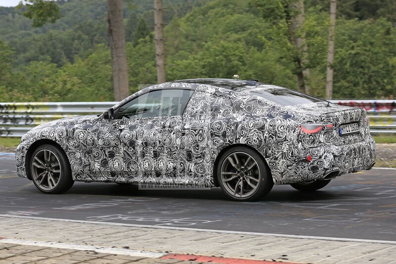 De nog overvloedig aanwezige camouflage kan niet verhullen dat voor- en achterzijde in de stijl van de nieuwe 3-serie worden opgebouwd, maar tegelijkertijd een eigen sausje krijgen. Opnieuw net zoals de huidige 4-serie zich tot de vorige 3-serie verhoudt dus. De koplampen lijken wat vloeiender gelijnd en staan in een nadrukkelijke V-vorm ten opzichte van elkaar. Wat motoren betreft hoef je weinig spannends te verwachten: opnieuw zal de 4-serie leverbaar zijn met turbomotoren met drie, vier of zes cilinders.