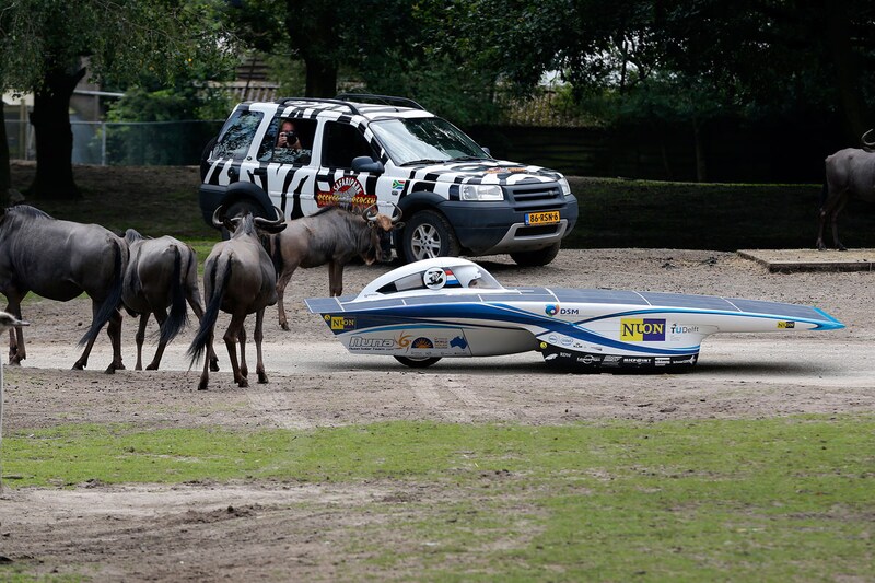 Het ging dus niet alleen om het landschap; tijdens de Sasol Solar Challenge kan de bestuurder 'the Big Five' ontmoeten en het was van belang om te kijken hoe de Zuid-Afrikaanse fauna op een vreemde verschijning als de Nuna zou reageren.