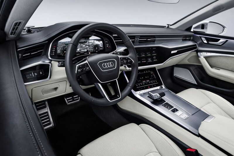 Ook aan de binnenzijde verwijzen veel elementen naar grote broer A8. Het bijzonder strakke en glanzende geheel wordt opgeluisterd door twee touchscreens. Dat betekent dat ook hier de centrale MMI-knop, die jarenlang toegang bood tot het infotainmentsysteem, verdwijnt. Het grootste scherm meet 8,6 inch. Uiteraard is ook het instrumentarium digitaal.