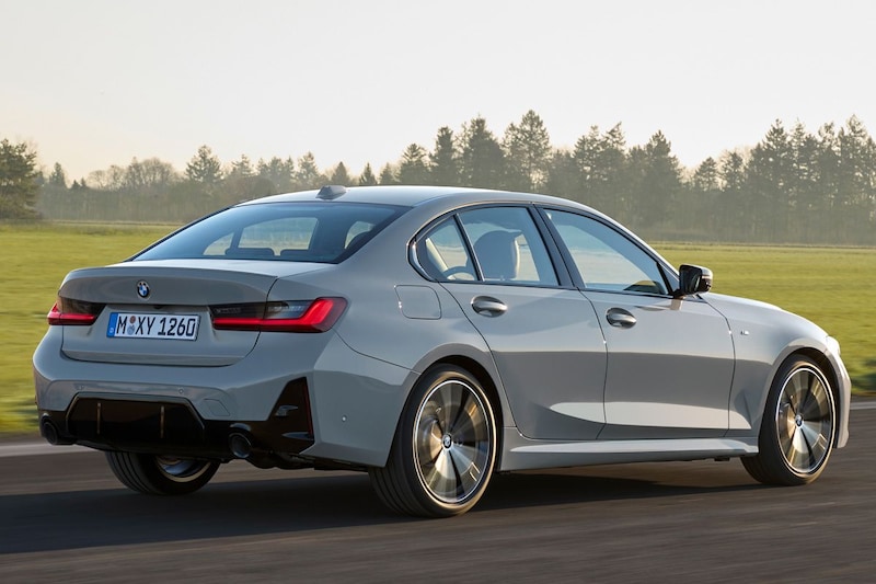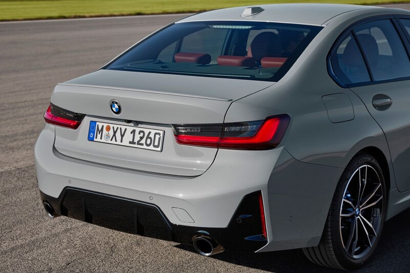 De achterlichtunits blijven ongewijzigd. Opvallend, want bij andere recent gefacelifte modellen kiest BMW voor achterlichten met onderdelen in zwarte pianolak. De achterbumper heeft in M-trim een opvallend grote, hoog doorlopende ‘diffuser’. Het stuk onder de achterlichten is wat strakker dan voorheen, de voorheen daar geplaatste reflectoren krijgen nu een verticale positie onder aan de bumper. Een kleine wijziging is er ook voor de nog altijd links en rechts geplaatste uitlaten. Afhankelijk van de motorversie hebben die nu namelijk een diameter van 90 of 100 millimeter, waar dat voorheen 80 of 90 was. De M-subtoppers, dus de M340d en M340i, hebben net als voorheen trapeziumvormige exemplaren.