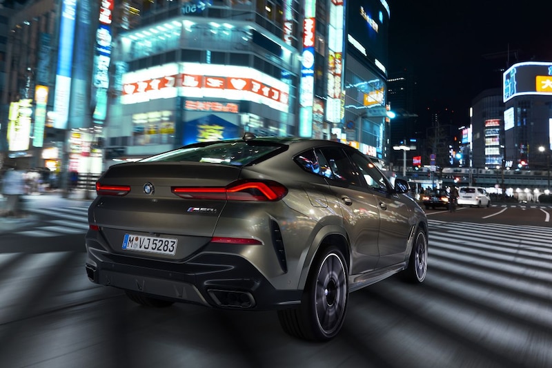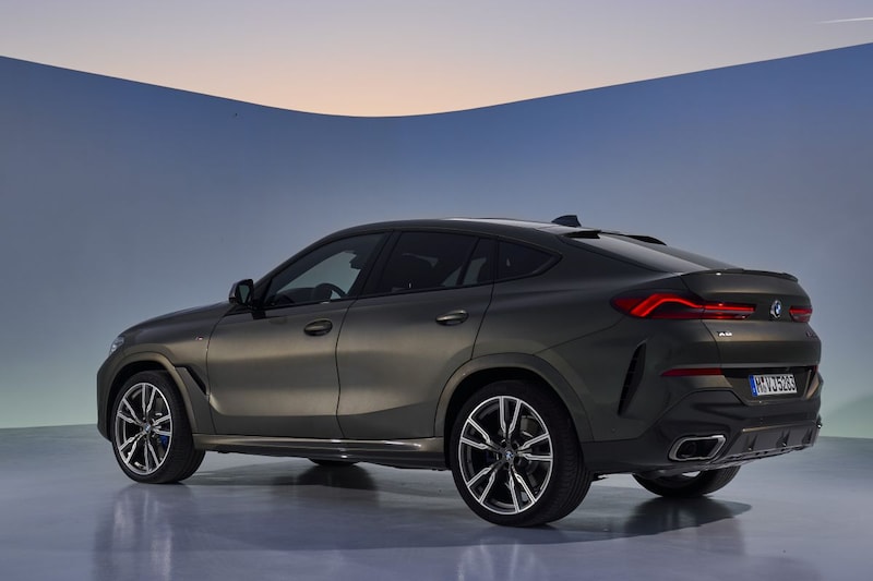 De receptuur van de nieuwe X6 komt helemaal overeen met die van zijn voorgangers en dat betekent dat ook dit volledig nieuwe model in theorie een 'coupéversie' van de X5 is. Een Sports Acitvity Coupé, zoals BMW het zo mooi weet te verkopen. Toch is de X6 meer dan een X5 met een aflopende daklijn. Zo heeft de auto nu horizontaal georiënteerde verlichting aan de achterzijde, L-vormige exemplaren die het achterste sterke gelijkenissen verschaffen met die van kleine broer X4. De kentekenplaat verhuist van de achterklep naar de achterbumper en op de neus zien we een gewijzigde grille ten opzichte van de X5. Optioneel is een verlichte variant van die nierengrille leverbaar. In dat geval licht de grille op bij het vergrendelen en ontgrendelen van de auto. Tijdens het rijden kan de grille eveneens worden verlicht. Letterlijk en figuurlijk opvallend.