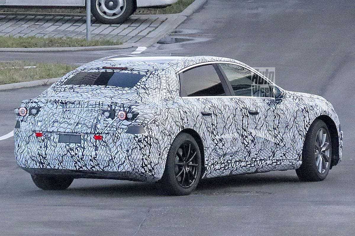De elektrische sedan op deze foto's zorgt mogelijk voor wat verwarring. Mercedes-Benz heeft namelijk ook een elektrische CLA-achtige in het vat zitten en wie vlug kijkt, denkt wellicht dat de auto op deze foto's dat model is. Die kleinere elektrische CLA-achtige is echter een maatje kleiner dan het ingepakte testmodel dat we je nu kunnen voorschotelen. De auto op de foto's hangt nog fanatiek in de camouflageplakkers en dus valt er over het uiterlijk nog weinig te zeggen, naast dan dat de 'EQC' een minder platgeslagen silhouet krijgt dan grote broers EQE en EQS. Overigens vragen we ons af of de koplampen die je op dit testexemplaar ziet wel de definitieve exemplaren zijn. Ook is het aannemelijk dat de handgrepen die je op de portieren ziet niet de definitieve exemplaren zijn. Waarschijnlijk krijgt de elektrische sedan namelijk in de portieren verzonken exemplaren.