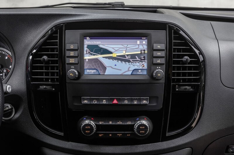 Hoewel de getoonde Activity met zijn zwarte bumpers geen twijfel laat bestaan over zijn functionele inborst is de factor ‘comfort’ zeker niet vergeten. Zo is ook deze instapper nu uit te rusten met Airmatic-luchtvering. Daarnaast zijn er nieuwe veiligheidssystemen, waaronder een digitale binnenspiegel die bij een vol camperinterieur vast een welkome aanvulling kan zijn. Ook het infotainment is vernieuwd, al moet je hier geen hypermoderne MBUX-schermen verwachten. Het Vito-dashboard blijft een behoorlijk traditioneel geheel, met een gewone radio en een los instrumentarium. Wel biedt het audiosysteem nu optioneel toegang tot digitale DAB+-radio. Wie bijbetaalt voor een 7-inch touchscreen kan bovendien een telefoon verbinden met Android Auto of Apple CarPlay.