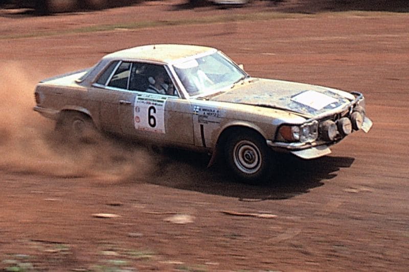 In 1980 heeft Mercedes grootse rallyplannen, achter de schermen wordt aan een nieuw project gewerkt maar dat zal nimmer het daglicht zien. Zodoende wordt de oude, grote zware SLC gehomologeerd. Voor je weet maar nooit.
