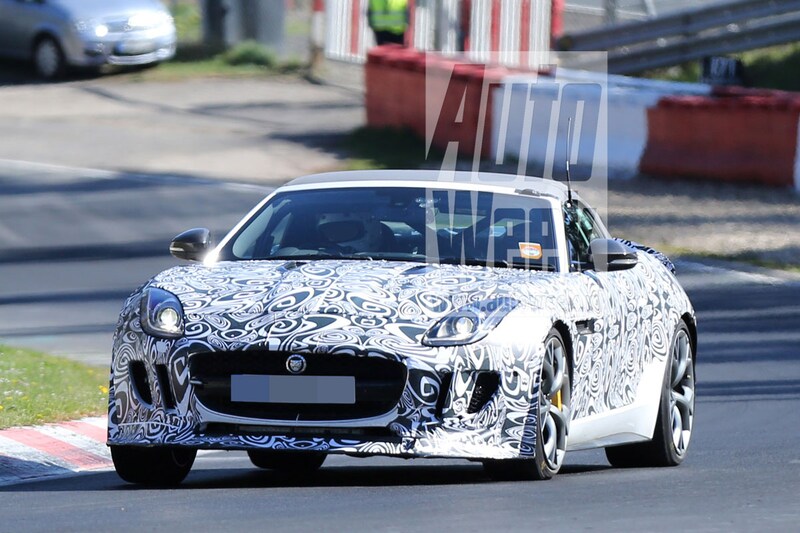 Opgepompte Jaguar F-Type Roadster rijdt testronden
