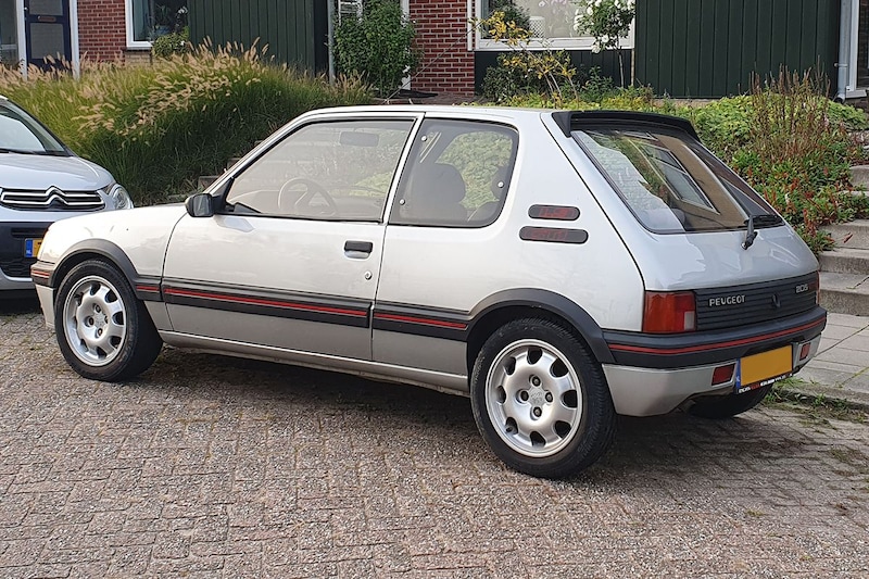 Natuurlijk is de 205 T16 de versie van de 205 die het kleine Franse succesnummer internationaal tot een superster maakte door zijn optreden tijdens de Groep B-rally's, maar dichter bij zo'n heftig rallykanon dan met een 205 GTI zou de gewone sterveling niet komen. De 205 GTI debuteerde midden jaren tachtig met een 105 pk sterke 1.6. Het GTI-gamma werd kort na de komst van de 105 pk en 115 Nm sterke versies met 1.6 uitgebreid met de 205 1.9 GTI. Dat huzarenstukje van de in serie gebouwde 205 had een minder hitsig karakter dan de versie met 1.6, maar bracht wel meer vermogen op de been: aanvankelijk 130 pk en later door de komst van een katalysator 122 pk. De 130 pk die dit exemplaar heeft, helpen het 860 kilo wegende welpje in 7,8 seconden vanuit stilstand aan een snelheid van 100 km/h en aan een topsnelheid van 208 km/h. De 105 pk sterke 205 GTI met 1.6 – die naast de GTI met 1.9 werd gevoerd – was met een 0-100-tijd van 9,5 tellen duidelijk minder kwiek.