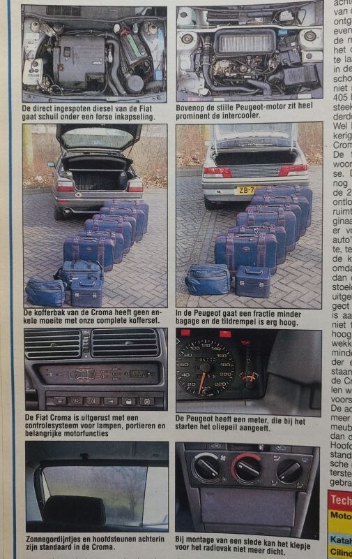 Einde verhaal voor de Fiat, zou je denken. Nou, nee hoor. Met de Croma wist Fiat ons echt wel te overtuigen destijds. De Italiaan had namelijk ook weer enkele streepjes voor op de 405. Een belangrijk voordeel was het verbruik. De Croma had namelijk voor hetzelfde geld als de 405 een grotere (2.0 vs. 1.8) turbodieselmotor, eentje met directe inspuiting én dus een gunstiger verbruik. De Croma was daarmee pionierend bezig, tot die tijd waren direct ingespoten diesels vooral bekend in de wereld van de vrachtwagens. Daarbij bood de Croma een veel beter bruikbare laadruimte achterin, omdat-ie een hatchbackklep, deelbare achterbank en een veel lagere tildrempel had. Daarbij was de Croma ook nog eens beter uitgerust dan de 405 voor dezelfde prijs. Zaken als elektrisch bedienbare ramen voor en achter, een armsteun, automatische klimaatregeling en gordijntjes achterin waren - in tegenstelling tot in de 405 - aanwezig.