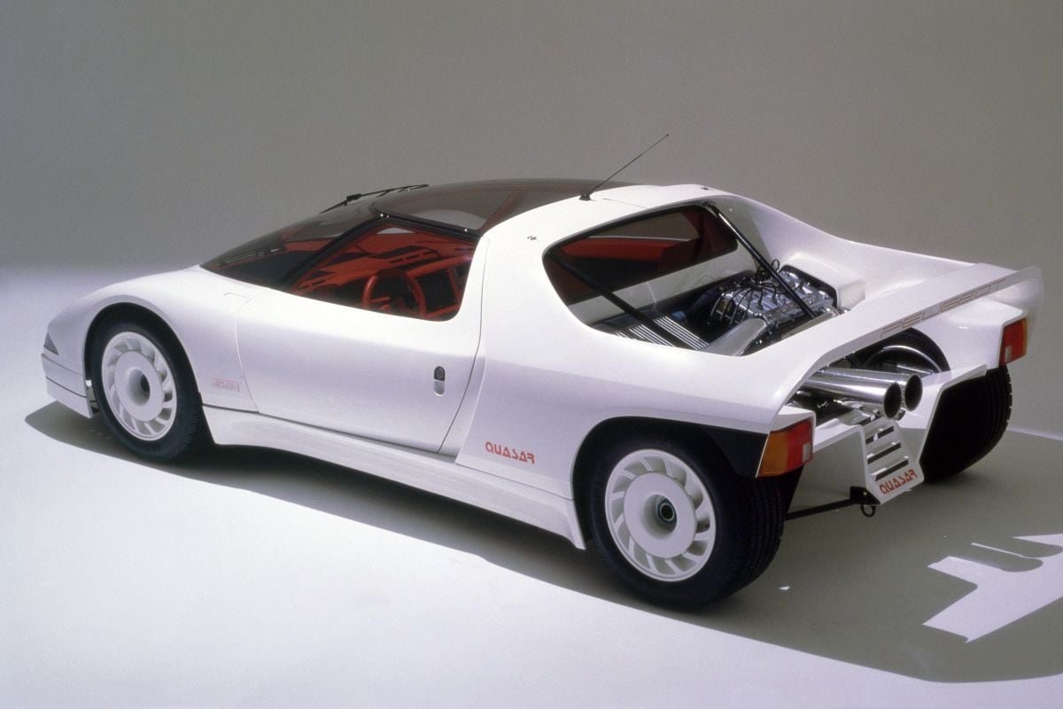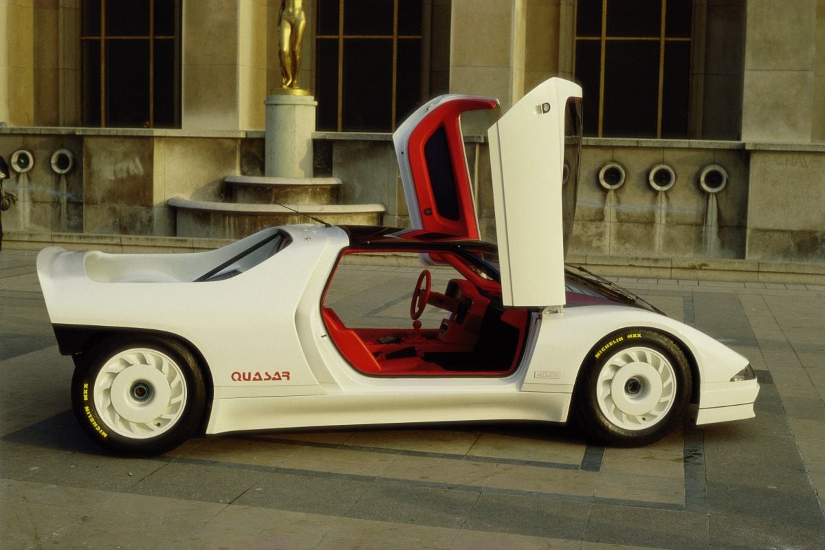 Het ging hier inderdaad om een serieuze motor: een afgeleide van het blok uit Peugeots 205 Turbo 16, die hetzelfde jaar voor het eerste werd ingeschreven in het WK rally's. Die auto had een enkele turbo en 350 pk, later zelfs 500 pk, zodat het niet onaannemelijk was dat de tweede turbo daadwerkelijk voor een hap extra schwung kon zorgen. Blijft de vraag wat Peugeot nu precies wilde met de Quasar, aangezien het niet het soort auto was waarmee je in Finland aan de 1000 Meren Rally wilde deelnemen. Het antwoord ligt besloten in de persoon die het ontwerp van de carrosserie voor zijn rekening nam. Dat was Gérard Welter, niet alleen directeur van Peugeots designafdeling, maar sinds 1968 ook begenadigd ontwerper van de racewagens van het merk WM. Zijn specialiteit was het bouwen van Le Mans-wagens met Peugeot-techniek. Wie met die wetenschap in het achterhoofd andermaal naar de Quasar kijkt, zal de opzet van Welter begrijpen: Peugeot Talbot ging zoetjes aan toewerken naar deelname aan de autosport op het circuit. Anders had Welter de motor vast niet zo idioot opzichtig (en aangenaam verkoelend!) 'buitenboord' gehangen zoals hij bij de Quasar deed en zou hij de auto niet een wielophanging à la Formule 1 hebben gegeven. Verwarrend is dan wel weer dat er nóg iemand de vrije hand kreeg binnen dit ontwerp en dat was de vermaarde, kunstzinnige Paul Bracq, die bij Peugeot hoofd was van de interieurafdeling. Hij gaf de Quasar de luxe en hightech van een limousine door alle meubilair in rood leer te verpakken en alle instrumenten digitaal te maken. Jazeker, het dashboard bestond niet uit ronde klokken, maar was één groot lcd-paneel. Visionair!