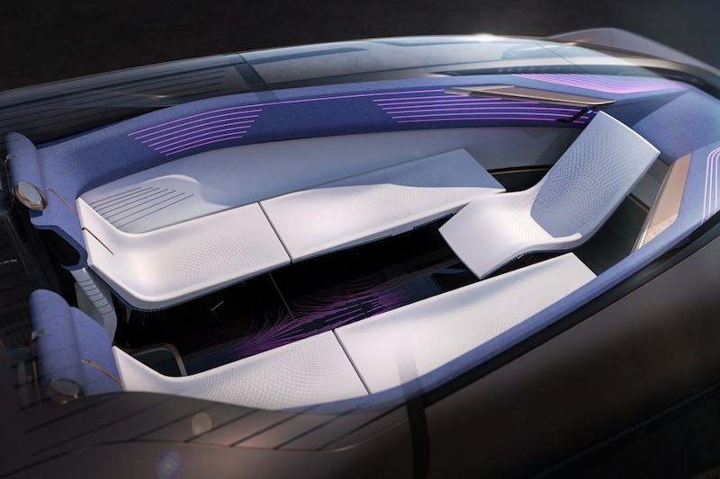Datzelfde geldt voor het interieur. Daar zijn in 'Drive Mode' vijf afzonderlijke zitplaatsen te vinden. In 'Autonomy Mode' en 'Rest Mode' veranderen vier van de zitplaatsen in een soort loungebanken en draait de voorste zetel om. Zo ontstaat er één gezellige zithoek. De Teorema is, je had het vast al geraden, in staat om volledig autonoom rond te rijden. Onderwijl kunnen de inzittenden op het glazen paneel boven hen naar allerlei zaken kijken die door Augmented Reality in de omgeving worden geprojecteerd, zoals informatie over bezienswaardigheden, ritgegevens en weerupdates. Je kunt echter ook gewoon een babbeltje maken met elkaar. Via aanraakgevoelige panelen in de flanken zijn 'knoppen' tevoorschijn te toveren die na aanraking oplichten. Daarmee laat de Teorama zich bedienen.