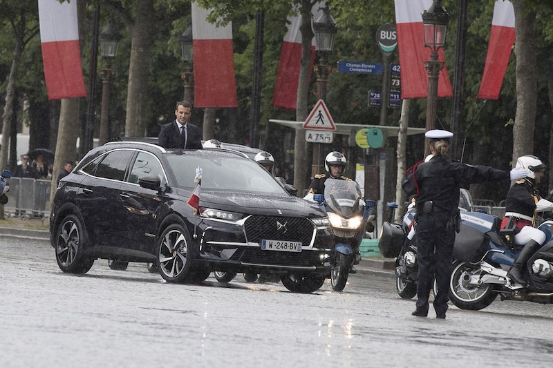 De 39-jarige Emmanuel Macron heeft zich voor zijn eerste ritje als president van Frankrijk laten vervoeren in het jongste model van DS: de 7 Crossback. Omdat er natuurlijk het nodige naar omstanders gewuifd moest worden, is de 7 Crossback voorzien van een groot te openen dak.