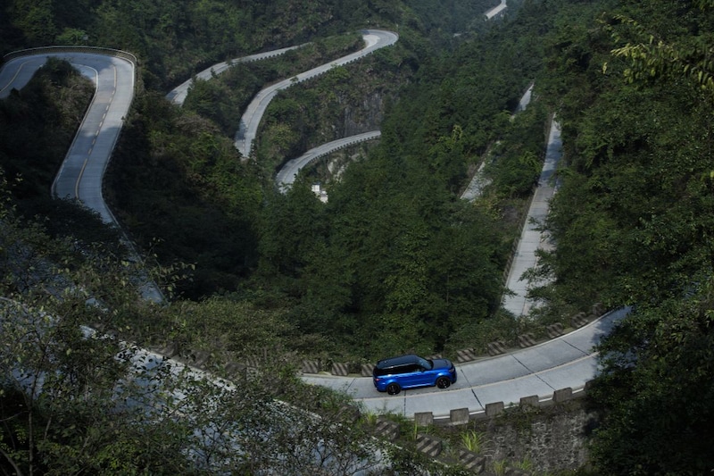De Tianmen Road: 11,3 kilometer lang, 99 bochten rijk en in 2016 door een Ferrari 458 Italia binnen 10 minuten en 31 seconden afgelegd. Land Rover leende de Nederlandse Panasonic Jaguar Racing-coureur Ho-Pin Tung en zette die achter het stuur van de snelste Ranger Rover die het ooit maakte. Het resultaat is een nieuw snelheidsrecord op de 'de weg naar de hemelpoort'.