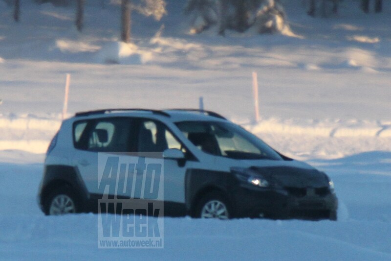 Onze spionagefotograaf betrapte deze opgehoogde Renault Scénic vermoedelijk ergens in het hoge noorden. Vermoedelijk, want de exacte locatie verraadt hij - om begrijpelijke redenen - liever niet. Het waren volgens hem in ieder geval 'erg koude omstandigheden' en al die sneeuw zou een mooie gelegenheid zijn om het 4WD-systeem van deze avontuurlijke Scénic uit te proberen. Toch? Niet dus. Deze Scénic Cross, zo noemen we 'm voorlopig maar even, heeft namelijk helemaal geen vierwielaandrijving.