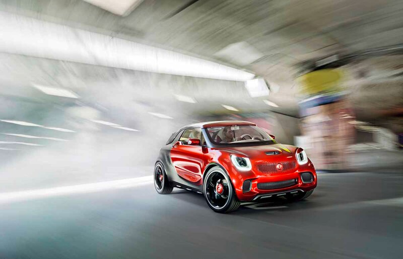 Smart neemt een nieuwe concept car mee naar de beurs van Parijs: de Forstars, een sportief tweedeurs coupeetje met groot glazen dak, elektrische aandrijving en een filmprojector in de motorkap.