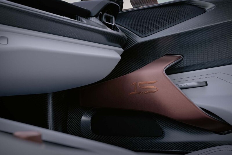 De Rimac Nevera 15th Anniversary Edition, toepasselijke naam, is koperkleurig. Ook toepasselijk, want dat verwijst onder meer naar koperdraad, waar zeker in een elektrische auto bepaald geen gebrek aan is. Het is een bijzondere nieuwe matte lakkleur, speciaal voor deze versie ontwikkeld. In het interieur komt de koperkleur ook meermaals terug, evenals diverse 15th Anniversary-logo's. Overigens krijgen we een vrij donker en een wat lichter interieur te zien. Zijn er dan meerdere mogelijkheden? Jazeker, het is namelijk geen one-off. Er komen negen van deze feestbeesten, voor minstens 2,35 miljoen euro per stuk.