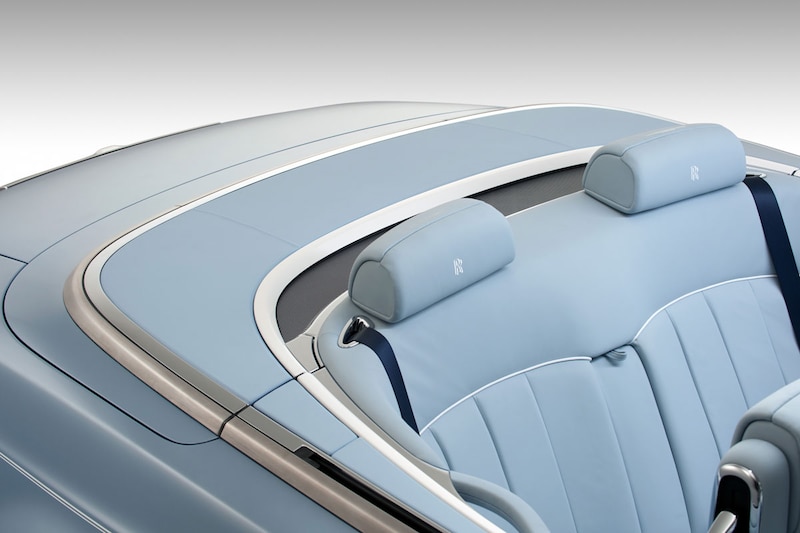 De Ghost wordt in two-tone lak uitgevoerd in Cobalto Blue en Jubilee Silver en krijgt ook in het interieur de nodige speciale details mee. Ook de Drophead Coupé ontkomt niet aan een Art-Deco-behandeling en wordt Powder Blue gespoten.