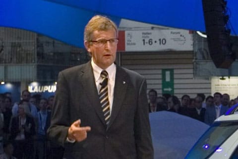 In de coulissen van de IAA in Frankfurt staan flink wat hoge heren van Saab. We spreken met directeur Jan Åke Jonsson en de uit Nederland afkomstige communicatiedirecteur Eric Geers. Die onthult onder meer de plannen van Saab en het Chinese BAIC.