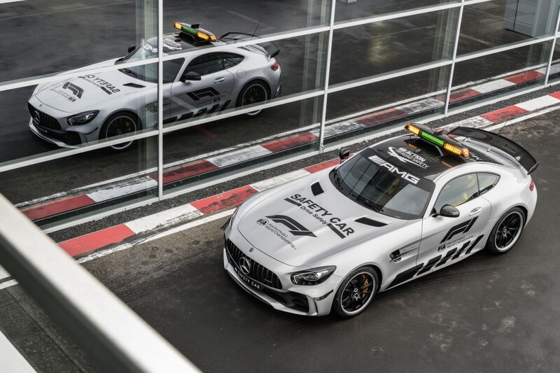 Waar vorig jaar de GT S nog dienstdeed als safetycar, neemt de sterkere R dit jaar het stokje over. Met 585 pk is de coupé de krachtigste safetycar uit de geschiedenis. De topsnelheid van de auto ligt op 318 km/h. Het afgelopen seizoen reed de AMG GT S voorop, die met zijn 510 pk ook niet kinderachtig is. In het verleden deed onder meer de SLS AMG dienst in de koningsklasse van de autosport.