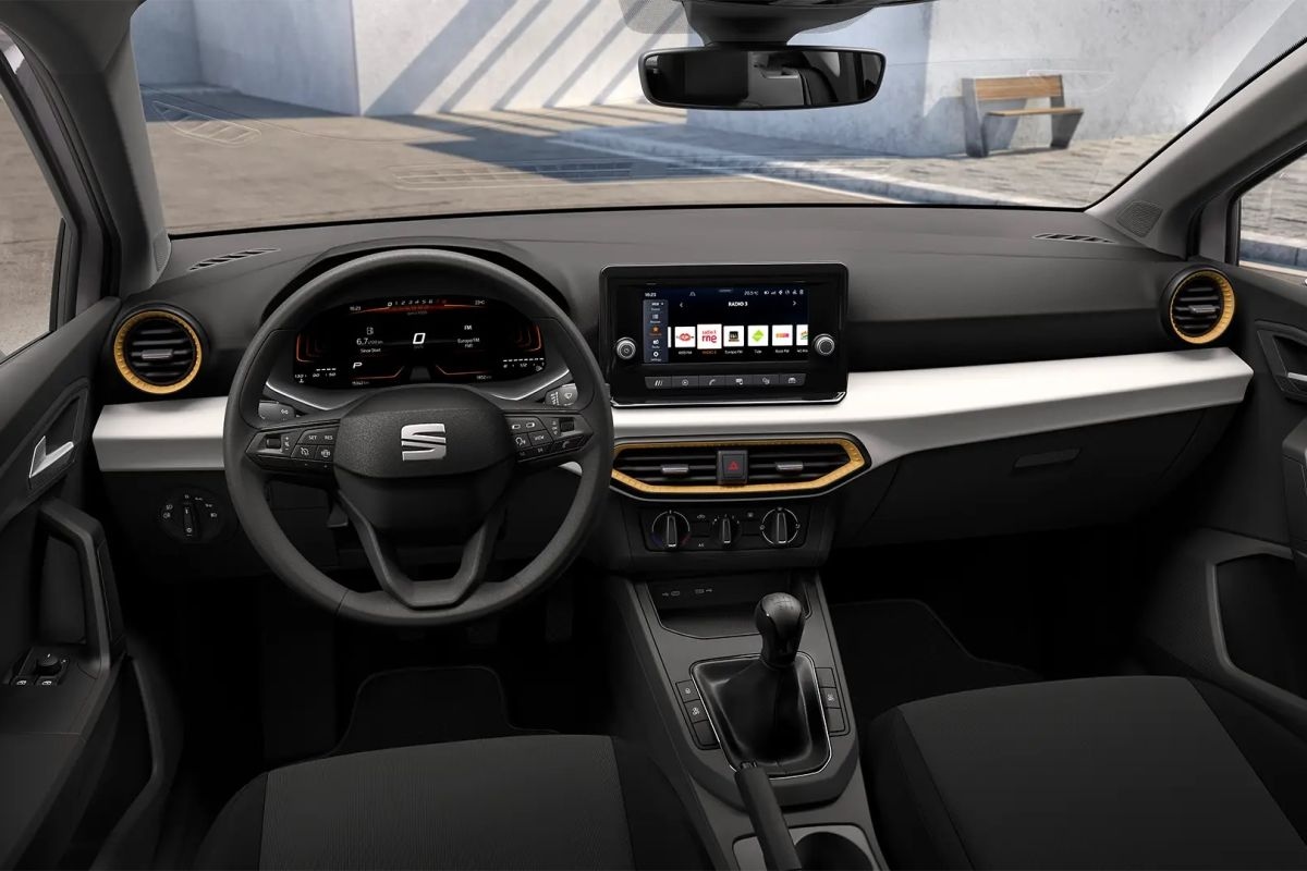 Wel vind je in het interieur bedieningselementen voor de airco en cruisecontrol, want die voorzieningen zitten er beide op. Ook biedt het infotainmentsysteem-met-touchscreen toegang tot Apple Carplay en Android Auto en huist achter het stuur een 8-inch digitaal instrumentarium (10-inch is een optie). Over enige vorm van parkeerhulp beschikt de instap-Ibiza niet, en ook een licht- en regensensor ontbreken. Daarbij is de instapper de enige die slechts vier speakers heeft, bij een uitrustingsniveau hoger zijn het er minstens zes.