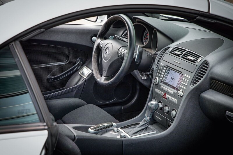 AMG ontwikkelde ooit een speciale uitvoering voor de Aziatische markt die veel gemeen had met deze safety car, de Tracksport, waarvan slechts 35 exemplaren de fabriek verlieten. Deze Tracksport was uitgerust met een vast dak, een rolkooi, een racetank, een koolstofvezel afwerking van de kuipstoelen, koolstofvezel op het dashboard en nog tal van andere zaken. De eenzitter zonder straatgoedkeuring mocht echter alleen tijdens race-evenementen in Aziatische landen laten zien wat hij in huis had. De Tracksport was simpelweg voorzien van te veel autosportcomponenten om een kenteken te kunnen krijgen. In Affalterbach waren ze echter niet voor één gat te vangen. De technici monteerden een tweede koolstofvezel kuipstoel voor de bijrijder, de rest van de auto werd geciviliseerd en de eerste Black Series was een feit. De dakstijlen waren nu uitgevoerd in carrosseriekleur, waardoor alleen door de ontbrekende naad van het klapdak twijfel ontstaat. Het dakmechanisme is echter verdwenen; een laag zwaartepunt was in dit geval belangrijker dan de lol van het open rijden. Ook de brede wielkasten, die plek bieden aan gesmede 19-inch wielen die op een grotere spoorbreedte staan, maken net als de spartaans ogende lichtgewicht portierpanelen duidelijk dat dynamiek hoog in het vaandel stond bij de ontwikkeling. De 5,5-liter achtcilinder onder de lange motorkap met zijn Formule 1-achtige verhoogde middengedeelte is aangesterkt tot 400 pk, terwijl het gewicht ruim onder de 1.500 kilo bleef.