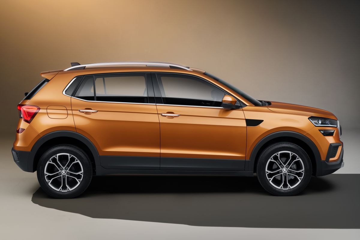 De Kushaq heeft een vrij agressief ogend front, compleet met over twee lagen uitgesmeerde verlichting zoals we dat van meer SUV's en cross-overs van Skoda kennen. Led-koplampen en -achterlichten zijn overigens van de partij. Achterop vertoont de Kushaq overeenkomsten met de Kamiq, maar ook met de Scala. Ook in het interieur kenmerkend Skoda-design. De Kushaq heeft een dashboard waarvan het middendeel min of meer overeenkomt met dat van bijvoorbeeld de Kamiq. Ook hier dus centraal een infotainmentscherm, tot 10-inch groot, met eronder twee horizontale ventilatieroosters. De ventilatieroosters die helemaal op de hoeken van het dashboard zitten, zijn net als bij de Karoq en Kodiaq verticaal georiënteerde exemplaren. Optioneel levert Skoda onder meer een elektrisch schuifdak en de cross-over is straks zelfs verkrijgbaar met geventileerde en met leer beklede voorstoelen. De kleur Honey Orange is speciaal voor de Kushaq gemengd