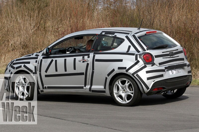 De eerste officiële foto's van de Alfa Romeo Mito zijn al getoond, maar om nou te zeggen dat je er een goed beeld van de proporties van de auto van krijgt – nou nee. Vandaar dat we het de moeite waard vinden deze foto's te tonen van dit nauwelijks gecamoufleerde prototype waarmee de hogesnelheidstests worden gedaan op de Nürburgring. Denk de stukken plakband even weg en de Mito staat in volle glorie voor je neus.