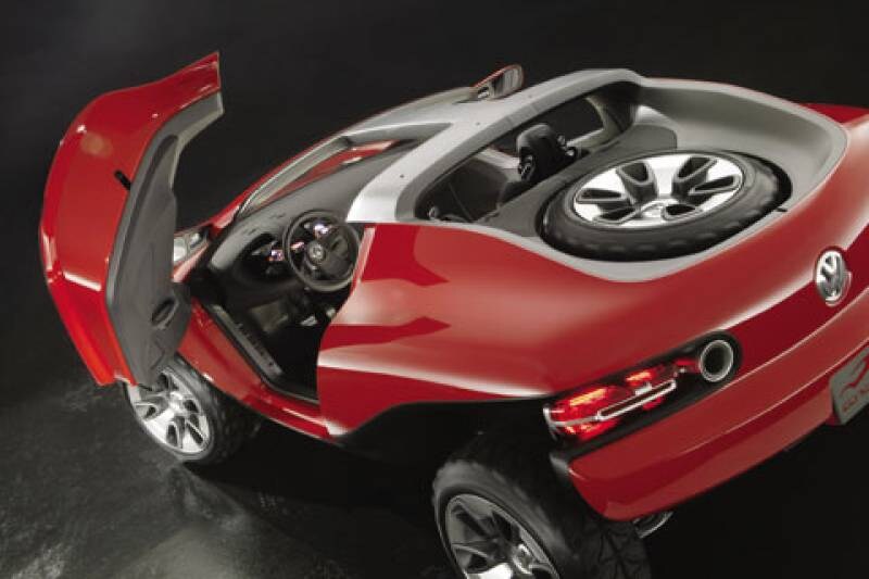 Volkswagen toont in Detroit een concept van een gespierde strandbuggy. Serieuze productieplannen zijn er niet, het is slechts een vingeroefening van Volkswagens ontwerpstudio in Californië.