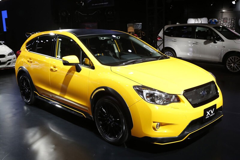 Dan is er de XV, een model dat ook hier leverbaar is. Dit knalgele exemplaar is Sport Concept gedoopt en ziet er met z'n zwarte details en extra bumperwerk behoorlijk venijnig uit. Het dak is voorzien van een koolstofvezel-patroon, het is niet bekend of het dak ook daadwerkelijk uit dit goedje is vervaardigd.