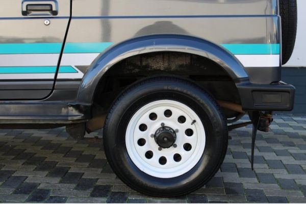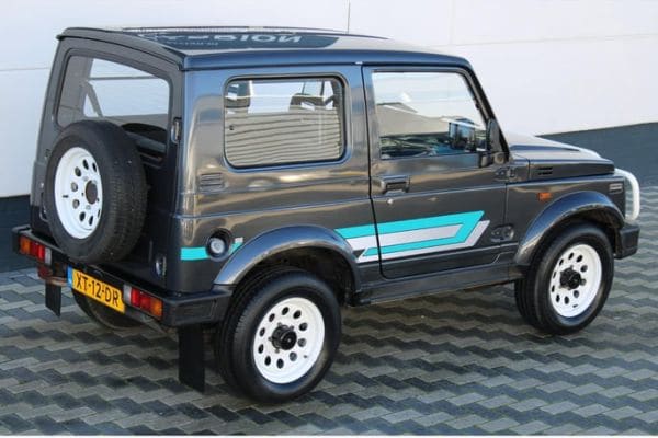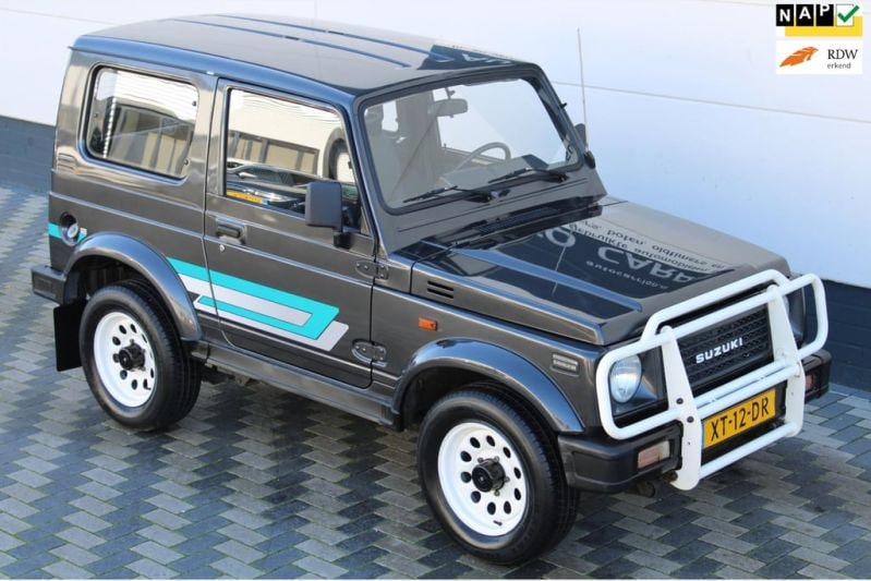 In dat jaar kwam dit origineel Nederlandse exemplaar namelijk op kenteken te staan. Deze generatie kwam in Japan op de markt in 1981 en dat is aan de hoekigheid van het ontwerp wel af te zien. Daarbij kreeg dit Europese exemplaar een af-fabriek en period correct stickerpakket aangemeten, wat samen met de witgespoten bull bar en wielen zorgt voor een guitig uiterlijk. Bij de upgrade van een 1,0- naar een 1,3-liter maakte de 4-versnellingsbak plaats voor een 5-traps exemplaar. Volgens de adverteerder heeft deze Samurai echter nog een vierbak aan boord, wat te maken zou kunnen hebben met het feit dat het model tegelijkertijd in verschillende fabrieken van de band rolde. Mogelijk voerde Suzuki de aanpassingen niet overal tegelijkertijd door.