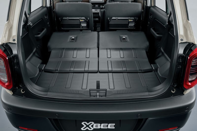 Net als het gros van Suzuki's kei-cars is de Xbee volgestopt met slimmigheden. Hij heeft klaptafeltjes voor de achterpassagiers, een opbergvak onder de nieuwe middentunnel, stoelen achterin die afzonderlijk van elkaar over een afstand van 16,5 centimeter te verschuiven zijn én die een verstelbare rugleuning hebben én die naar voren te klappen zijn. Onder de naar voren geklapte zitting kun je klein grut kwijt in daarvoor bestemde opbergbakken. Handig! Onder de vloer van de bagageruimte zit een diepe bak waarin je zaken als jerrycans een plekje kunt geven. Slim, toch?