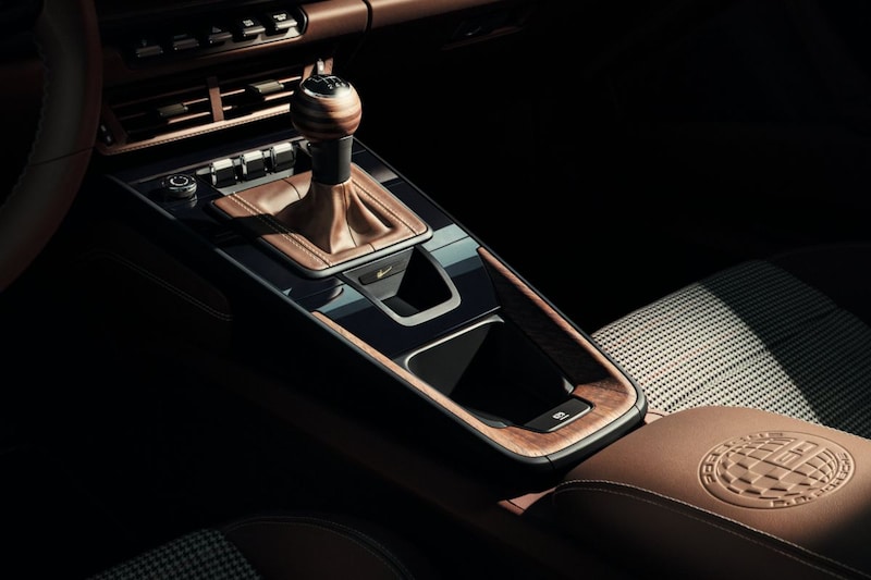 De binnenzijde is uitgevoerd in Truffelbruin ‘club leder’ in combinatie met een nostalgisch ruitjesmotief op de middenbanen van de stoelen, krijt beige stiksels en afwerking in walnotenhout. Hoeveel van deze speciale 911’s er komen? Dat hadden we zelf kunnen bedenken: 90 stuks.