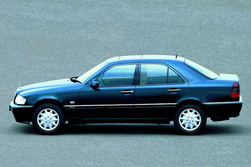 De C-klasse is niet de eerste middenklasser van Mercedes-Benz. Die eer was uiteraard voor de 190, die al in 1982 op de markt kwam. De C-klasse W202 was in 1993 de opvolger van de 190. Omdat deze auto als eerste de naam ‘C-klasse’ droeg, nemen we hem als uitgangspunt voor dit artikel. De W202 was met zijn ruim 4,5 meter 6,8 centimeter langer dan zijn voorganger. In de breedte groeide hij met drie centimeter. Qua ontwerp was de W202 ondanks zijn duidelijk moderne aanblik geen extreme stijlbreuk: het uiterlijk bleef hoekig en behoudend, waarbij de vorm van de grille en de koplampen eigenlijk maar minimaal afwijken van het front van de 190. Aan de achterzijde zijn de driehoekige achterlichten wel weer duidelijk anders. Later kwamen deze overigens ook weer terug bij de tweede C-klasse, de W203. De C-klasse W202 was overigens ook als Estate leverbaar, een carrosserievariant die de 190 moest missen.