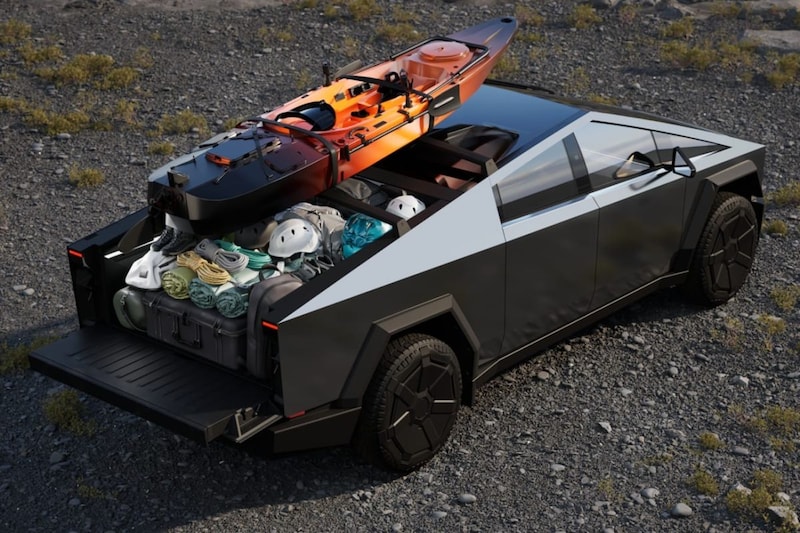 Wacht even. Een range extender? Zeker. Tesla levert indien gewenst een extra batterijpakket dat grofweg een derde van de laadbak inneemt. De bagageruimte meet in principe een flinke 3.424 liter. De Tesla Cybertruck Cyberbeast gaat in de Verenigde Staten omgerekend zo'n €88.500 kosten.