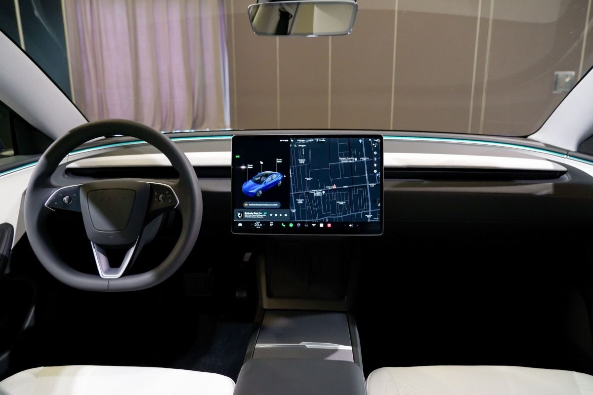 Het binnenste van de Tesla Model 3 gaat sowieso stevig op de schop. De minimalistische basis-opzet met één groot, centraal scherm blijft intact, maar dat scherm heeft een dunnere rand en vrijwel alle zichtbare onderdelen zijn nieuw. Er is meer aandacht uitgegaan naar fraaie details, klepjes en handgrepen voelen steviger aan en de rondom aangebrachte sfeerverlichting zorgt dat het ook in het donker gezellig blijft in de Tesla. Het stuurwiel is ook nieuw. Het bevat net als in de Model S en Model X ‘knopjes’ voor richtingaanwijzers en ruitenwissers. De ‘PRND’-functies voor de rijrichting verhuizen naar het scherm, zodat ook hier nu de bedieningshendels aan de stuurkolom in het geheel konden worden geschrapt.