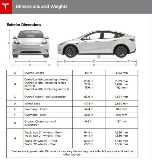 Aangezien klanten hun nieuwe Model Y krijgen, is de handleiding van de elektrische SUV ook openbaar gemaakt. Dat 225 pagina's tellende document is ook voor ons interessant, want nu komen we een stuk meer over de auto te weten. Zo was het tot op heden bijvoorbeeld nog onbekend hoe groot hij precies was. Een schema in het document biedt uitkomst. De koets meet een lengte van 4,75 m, heeft een wielbasis van 2,89 m en is 1,92 m breed (zonder spiegels). In de hoogte komt de meetlat tot 1,62 m. Op de achterbank is de beenruimte precies 1,00 m lang. In de achterbak kan 1,9 kubieke meter aan bagageruimte worden gevuld.