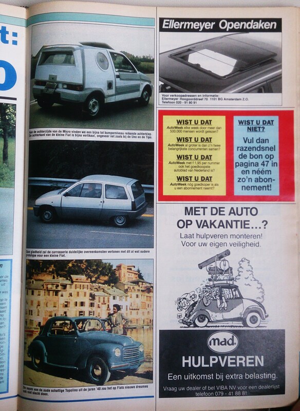 In AutoWeek 18 van 1990 hadden we groot nieuws te pakken! In onze rubriek 'Betrapt!' schitteren een hele rits foto's van een ingepakt, minuscuul Fiatje dat we vol overtuiging 'Micro' doopten.