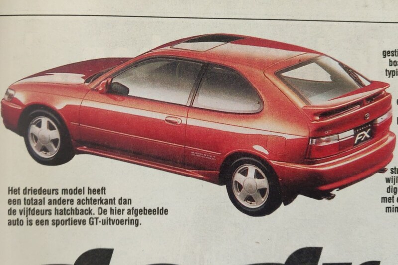 Bovenaan de tweede pagina schitterde de driedeurs hatchback. Hier weliswaar nog getoond als de voor Japan bestemde FX, maar het gaf al een goed beeld van wat ons te wachten stond. Bij de Corolla hatchback vielen ons vooral de vrij ronde vormen op: "De rechte achterkant is verleden tijd, waardoor de auto een stuk volwassener oogt. Hij sluit daarmee ook goed aan bij de grotere Toyota-modellen." Wat we toen nog niet wisten, zo blijkt uit de verdere omschrijving, was dat er ook een vijfdeurs versie van die hatchback-Corolla zou komen. Op dat moment dachten we nog dat de vijfdeurs liftback die rol altijd zou vervullen.