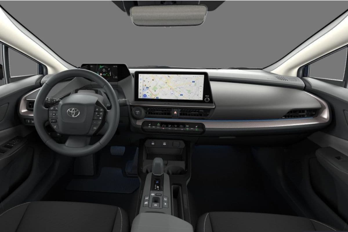 Binnenin de Toyota Prius word je er evenmin continu aan herinnerd dat je voor de basisuitvoering bent gegaan, want erg basis is het niet. In tegendeel. Je vindt er weliswaar geen luxe lederen bekleding of opvallend chic afgewerkte panelen, maar een uit de kluiten gewassen infotainmentscherm, met verschillende materialen afgewerkt dashboard en keurige stoelbekleding met een contrasterend biesje zijn altijd aanwezig. Zelfs een ledstripje sfeerverlichting mag er gewoon zijn; het binnenste van de meest luxe en net geen €9.000 duurdere uitvoering (de Solar Edition) toont - behoudens de bekleding - zelfs geen verschillen.